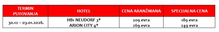 - DAN, SREDA 31.12.2025. BEČ – PARNDORF (fakultativno)