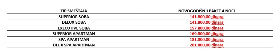 NOVOGODIŠNJI PAKET aktivan za period 31.12.2025-04.01.2026.