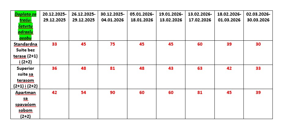 - 2. dan – do poslednji dan – Boravak u apartmanu na bazi izabrane usluge